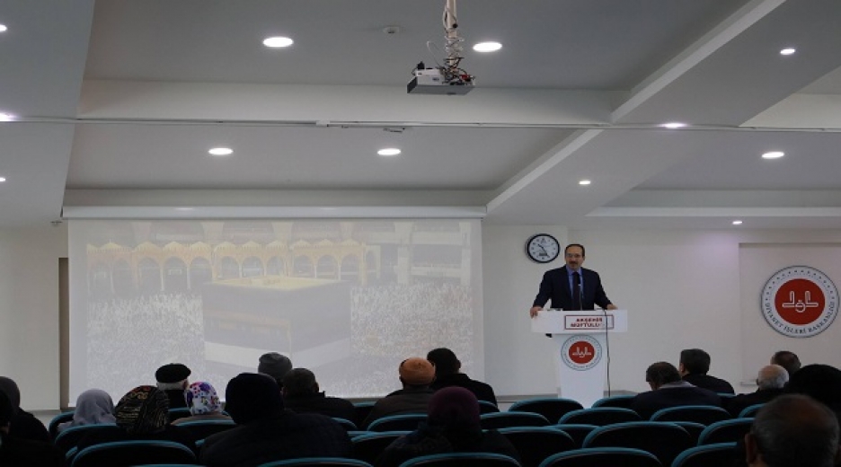 Kevser Köksal Kur’an Kursu Konferans Salonu’nda gerçekleştirilen toplantıda, hacı adaylarına hac sürecine ilişkin resmi işlemler hakkında kapsamlı bilgiler verildi.