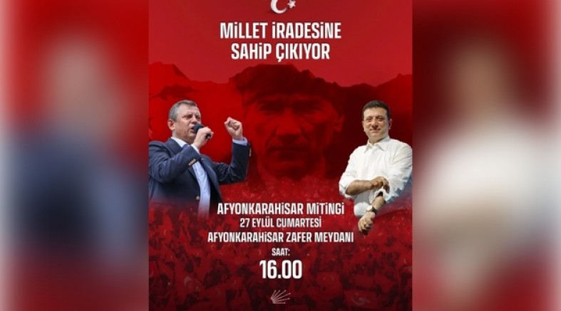 Genel Başkanımız Özgür Özel önderliğinde başlatılan "Millet İradesine Sahip Çıkıyor." Mitingleri 27 Eylül 2025 Cumartesi günü saat 16.00 da Afyonkarahisar' Zafer Meydanında yapılacaktır.