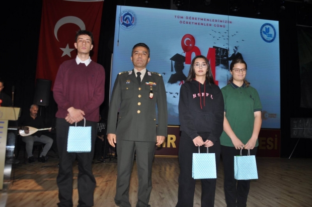 Programda Öğretmenler günü münasebetiyle düzenlenen yarışmalarda derece alan öğrencilere ödülleri protokol tarafından verildi. Emekli olan öğretmenlere plaket ve belge takdiminin ardından emekli öğretmen Zühtü Şahin’de bir konuşma yaptı. Şahin “Eğitime ve eğitimciye önem veren 3 erkek kardeşinde öğretmen olduğu bir ailenin bireyi olmanın ayrı bir hazzını yaşamaktayım. Öyle ki, eğitime verdiğimiz önemi, şükürlere olsun 3 kızım, bir damadım ve bir gelinimin de öğretmen olarak bu kutsal mesleğin fedakar birer bireyi olmalarıyla da pekiştirmenin tarif edilmez mutluluğunu tattım elhamdülillah” diye konuştu. Programda öğrenciler ve öğretmenler tarafından şiirler okundu. 6 Şubat depreminde hayatını kaybeden, terör örgütü saldırılarında şehit düşen öğretmenler anısına yapılan tiyatral gösteriler ve müzik dinletileri ile devam eden program hatıra fotoğrafı çekimiyle son buldu.