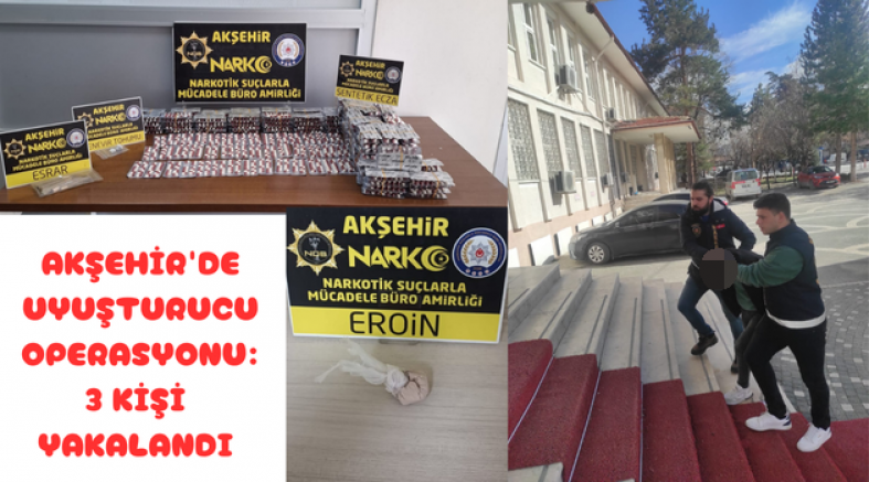 Akşehir İlçe Emniyet Müdürlüğü Narkotik Suçlarla Mücadele Büro Amirliği ekiplerince sokak satıcıları ve kullanıcılarına yönelik yürütülen çalışmalar kapsamında durumundan şüphelenilen bir araç durdurularak araçta ve şüpheli M.Ş. ve A.M.B.’nin üzerinde arama yapıldı. Şüpheli şahısların üzerinde yapılan aramalarda 17 gram eroin maddesi ele geçirildi.