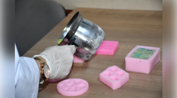 Kurs öğreticisi Sümeyye Arslan, doğal sabunların yapım aşamalarını da ayrıntılarıyla anlattı. Kurs kapsamında tamamen bitkisel yağlardan üretilmiş sabun bazları kullanılıyor ve üretimde kimyasal maddeye kesinlikle yer verilmiyor. Arslan “ Doğal sabunlarımızı üretirken bitkisel yağlardan üretilen sabun bazlarımızı kullanıyoruz. Bu bazlarımızı ocakta belirli sıcaklıklarda eritiyoruz. Direk ocağa temas etmiyoruz. Erittikten sonra bunlara doğal koku ve doğal renk ekliyoruz. Bunları da dijital termometre yardımı ile belirli santigrat derecelerde eklemelerini yapıyoruz. Daha sonra renklendirme ve kokulandırma yaptığımız sabun bazımızı kalıplara döküm aşamasına geçiyoruz. Bu süreçten sonra kalıpta soğuma ve bekleme süreci var. Kalıpta soğumaya bıraktıktan sonra belirli süreden sonra kalıptan çıkarma aşaması var. Kalıplardan çıkartıp sabun yapımını tamamlamış oluyoruz. İçeriği tamamen dediğimiz gibi doğal ve sabun bazlarımız, bitkisel yağlardan üretilmiş. Bunlara doğal renk ve kokuları ekliyoruz. Sabunlarımızın temizleme gücü çok iyi marketten aldığımız sıvı veya katı sabunlar gibi değil. Buraya gelen hanımlar kendi doğal sabunlarını elde etmiş oluyorlar. Aynı zamanda bunlar birer oda kokusu niteliğinde hem görsellik hem de mis koku saçıyor etrafa” dedi.