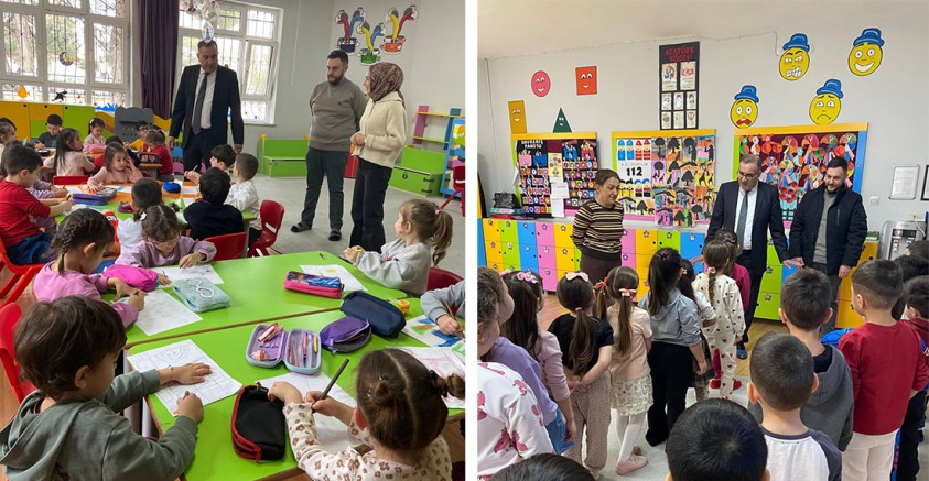 Ziyaretin sonunda okul öncesi dönemde çok yönlü eğitimin önemine değinen İlçe Milli Eğitim Müdürü Barbaros Topaloğlu, minik öğrencilere ve okul yönetimi ile öğretmenlere başarılar diledi.