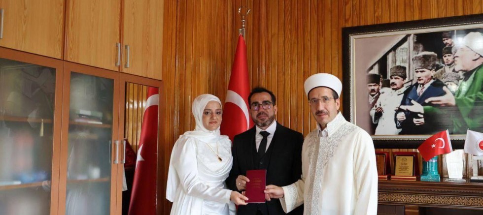 Geçtiğimiz günlerde nikah kıydırmak için Akşehir İlçe Müftülüğü’ne müracaat eden Gülnur Ünal-Ali Yılmaz çiftinin nikahı Akşehir İlçe Müftüsü Ahmet Müjdeci tarafından kıyıldı. Müftülük Makamında Kur'an-ı Kerim tilaveti ve dualar eşliğinde gerçekleşen Nikah Merasiminde İlçe Müftüsü Ahmet Müjdeci ailenin dinimizdeki önemine vurgu yaparak genç çifte ve ailelerine tavsiyelerde bulundu. Dualarla başlayan bu birlikteliğin bir ömür huzurla sürmesi temennisinde bulunan İlçe Müftüsü genç çifte Kur'an-ı Kerim, İlmihal ve çeşitli kitaplar hediye etti.