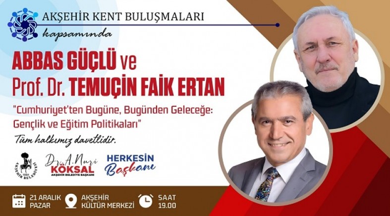 “Akşehir Kent Buluşmaları serisi ile Akşehir’in kültürel ve düşünsel hayatına yeni bir soluk kazandırmayı hedefliyoruz. Eğitim ve gençlik gibi geleceğimizi doğrudan ilgilendiren bir konu vasıtasıyla alanında yetkin iki ismi şehrimizde ağırlamaktan büyük mutluluk duyuyoruz. Tüm hemşehrilerimizi bu anlamlı buluşmaya bekliyoruz.”