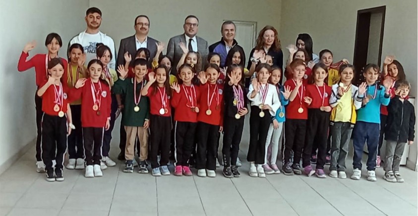 Cumhuriyet İlkokulu ve Yıldırım Bayezid İlkokulu öğrencileri, artistik jimnastik dalında İl yarışmasında gösterdikleri üstün başarılarla dikkat çektiler. Bu önemli başarıyı kutlamak ve desteklerini sunmak amacıyla, öğrenciler, antrenörler ve okul idarecileri, İlçe Milli Eğitim Müdürü Barbaros Topaloğlu'nu ziyaret ettiler. Ziyaret esnasında, Müdür Topaloğlu, öğrencilerin ve antrenörlerin gösterdiği üstün performanstan duyduğu memnuniyeti dile getirdi. Okul Sporları Artistik Jimnastik turnuvasında ilçelerini başarıyla temsil eden öğrencilere, antrenörlere ve idarecilere tebriklerini sundu. Ayrıca, başarılarının devamı için iyi dileklerde bulundu. Müdür Topaloğlu yaptığı konuşmada, sporun öğrenci gelişimindeki önemine dikkat çekti. Topaloğlu, Sporun, öğrencilerin fiziksel ve mental gelişimlerinde önemli bir yer tuttuğunu vurguladı. Jimnastiğin, öğrencilere takım çalışması ve disiplin gibi değerleri kazandırdığını belirtti. Kazanılan bu başarıların, diğer öğrencilere de ilham kaynağı olacağını ifade etti. Ziyaret, öğrencilerin ve antrenörlerin başarılarının devamı için planlanan çalışmalar hakkında bilgi alışverişi ile sona erdi. İlçe Milli Eğitim Müdürlüğü, bu tür başarıların artması için okullara gerekli desteği vermeye devam edeceğini belirtti. Öğrenciler ve antrenörler, başarılarının takdir edilmesinden duydukları mutluluğu dile getirirken, gelecekte daha büyük başarılara imza atmak için çalışmaya devam edeceklerini ifade ettiler. Öğrenciler, aldıkları destek ve motivasyonla kendilerine olan güvenlerinin arttığını belirttiler.