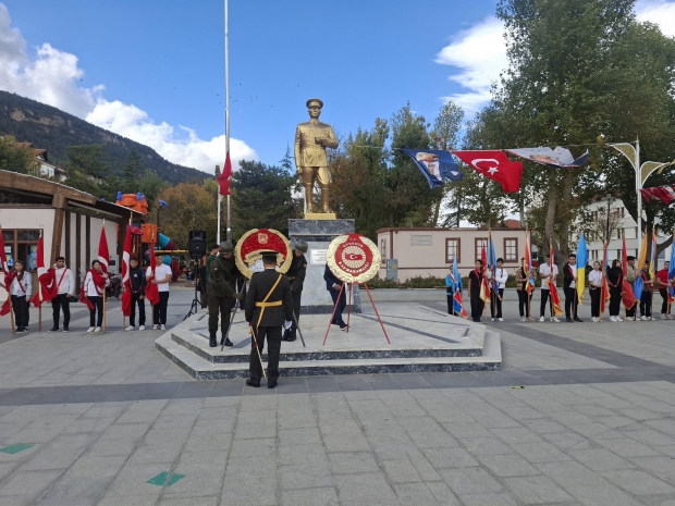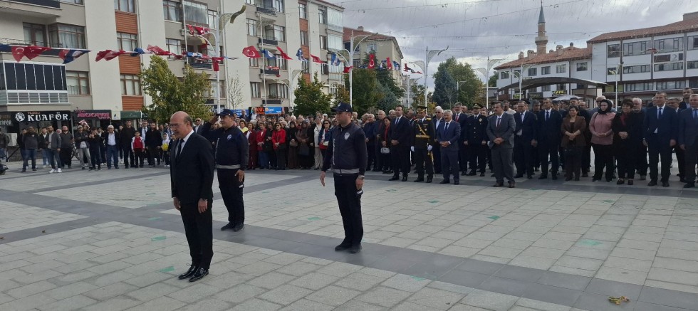 Törende; Akşehir Kaymakamı Mustafa Yiğit, Garnizon Komutanı Albay Hüseyin Şen ve Belediye Başkanı Ahmet Nuri Köksal tarafından Atatürk anıtına çelenkler sunuldu. Tören saygı duruşu ve İstiklal Marşı’nın okunmasıyla sona erdi. Kutlamalar çerçevesinde yarın aynı meydanda saat 10.00’da Cumhuriyet Bayramı kutlama programı yapılacak.