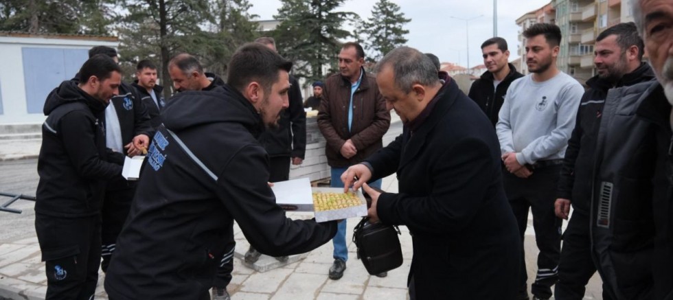Çalışmaları yerinde inceleyen Akşehir Belediye Başkanı Dr. A. Nuri Köksal, sahada görev yapan belediye personeline tatlı ikramında bulunarak kolaylıklar diledi.