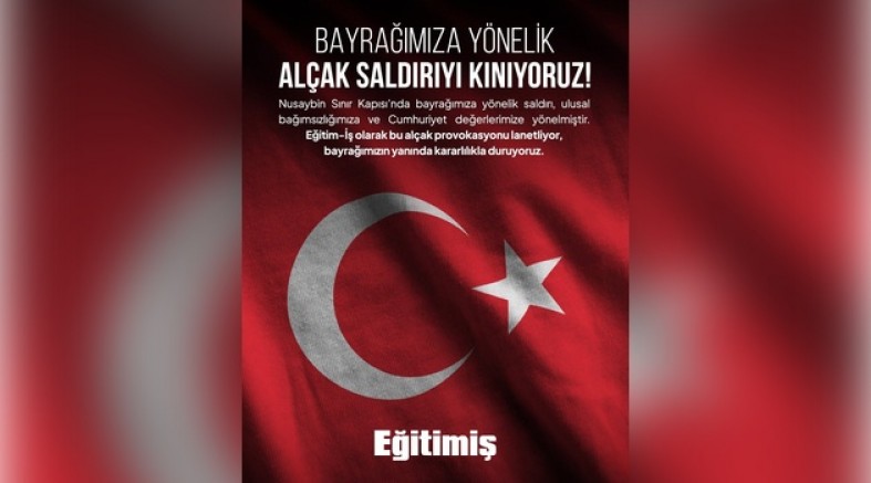 Bilinmelidir ki ulusumuz; bağımsızlık sembollerimize yönelik hiçbir saldırıyı sineye çekmeyecek, Cumhuriyetin değerlerini koruma kararlılığından asla taviz vermeyecektir. Bizler; sınıflarda çocuklarımıza vatan sevgisini, bayrak saygısını ve Cumhuriyet bilincini aşılayan eğitim emekçileri olarak, bu çirkin saldırı karşısında sessiz kalmayacağız.