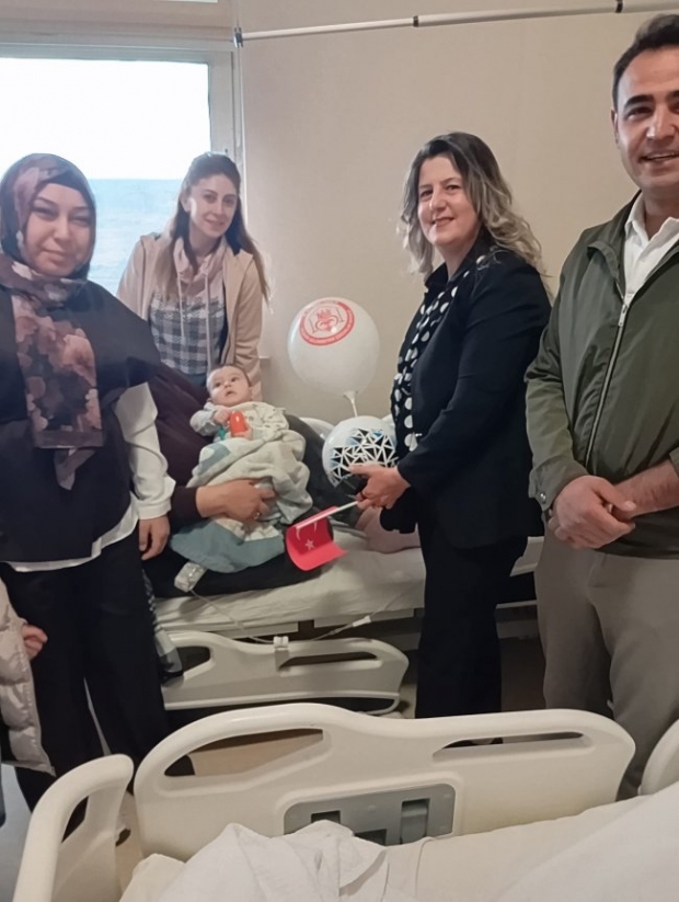“Çocuklar Gülsün” mottosuyla gerçekleştirilen etkinlikte, hastane ortamı balonlar ve Türk bayraklarıyla süslenerek adeta bir bayram alanına dönüştürüldü. Renkli görüntülere sahne olan ziyarette, çocuklar için hazırlanan sürprizler ve küçük etkinlikler sayesinde hastane atmosferi kısa süreliğine de olsa yerini neşeye bıraktı.
