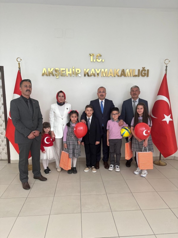23 Nisan Ulusal Egemenlik ve Çocuk Bayramının 104. yılı kutlamaları çerçevesinde Akşehir Tarık Buğra ilkokulundan bir gurup öğrenci Akşehir Kaymakamı Dr. Mehmet Özel’I makamında ziyaret etti.Temsili olarak Akşehir Kaymakamlığı görevinin okul öğrencisi Ahmet Asım Erdoğan’a devredildiği ziyarette, temsili Kaymakam bir konuşma yaparak okulların durumu ve öğrencilerin istekleri ile ilgili talimat verdi. Temsili Kaymakam daha sonra telefonla Akşehir Milli Eğitim Müdürü Barbaros Topaloğlunu arayarak okullarla ilgili eksikliklerin bir an once giderilmesi talimatını Verdi. Kaymakam Özel temsili Kaymakam Ahmet Asım Erdoğan ve arkadaşlarına Balon ve Futbol topu hediye etti.