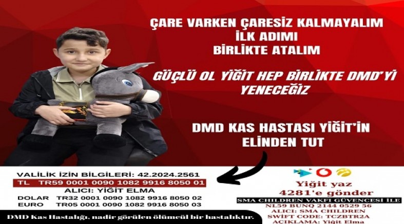 Ilgın’da yaşayan Elma ailesinin çocuklarından biri olan Yiğit, DMD hastalığının etkisiyle her geçen gün kas gücünü kaybediyor. Bu hastalık geri döndürülemiyor, durdurulamıyor. Sadece zamanında yapılan tedaviyle ilerleyişi engellenebiliyor.
