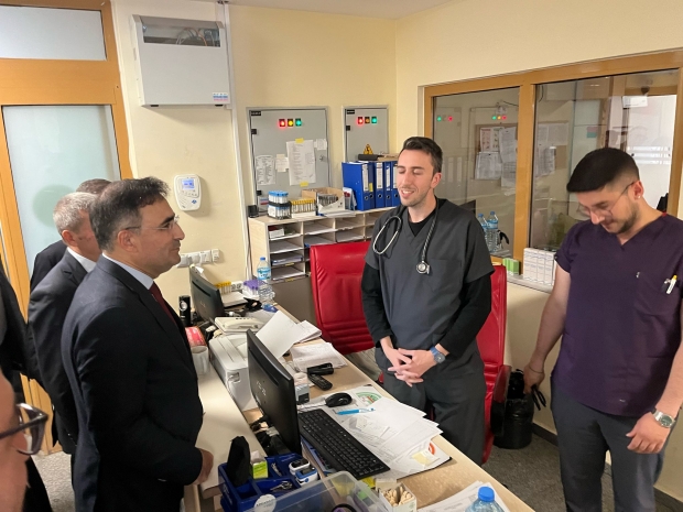 Güneş çarpması şikayetiyle tedavi gören hastaları ziyaret etti