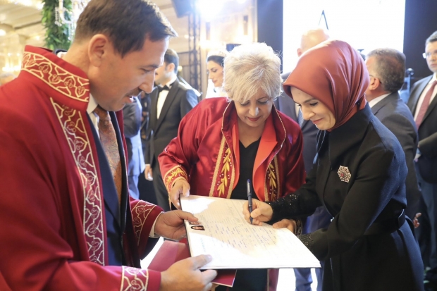 Genç çiftin nikâhını Konya Karatay Belediye Başkanı Hasan Kılca kıydı. Nikâh şahitliklerini ise Cumhurbaşkanı Yardımcısı Cevdet Yılmaz ile beraberindeki bakanlar yaptı.