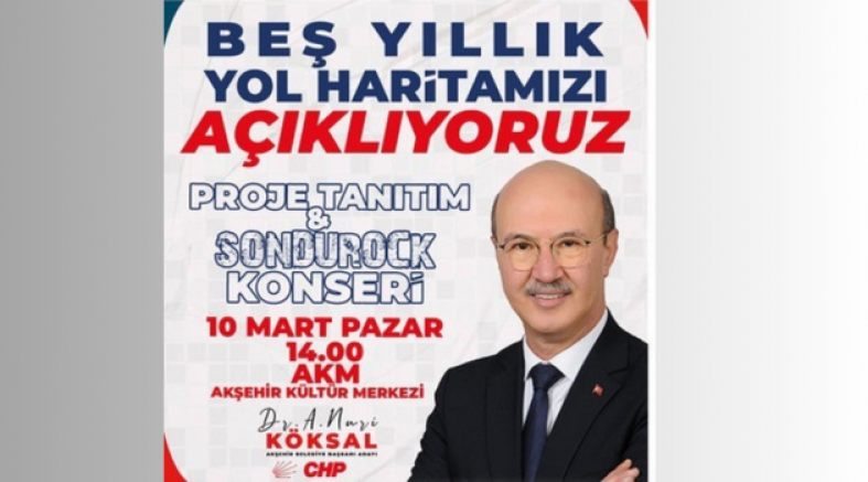 ‘’ Haydi Akşehir! Hepinizin katılımıyla, merakla beklenen 5 yıllık yol haritamızı tüm halkımız huzurunda açıklıyoruz’’ diyerek tüm Akşehir halkına davet çağrısında bulunuyor. Proje Tanıtım Lansmanımıza ve sonrasında SONDUROCK müzik grubunun gerçekleştireceği konsere tüm halkımız davetlidir.