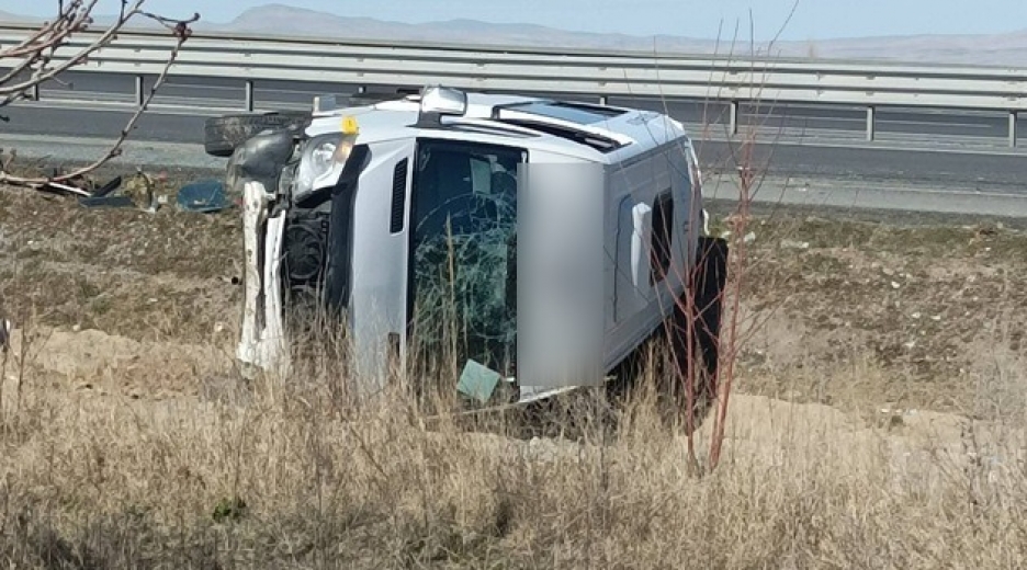 Çarpmanın şiddetiyle savrulan minibüs metrelerce sürüklendikten sonra kontrolden çıkarak şarampole devrildi. Kazada minibüs sürücüsü ile araçta bulunan 10 yolcu yaralandı.