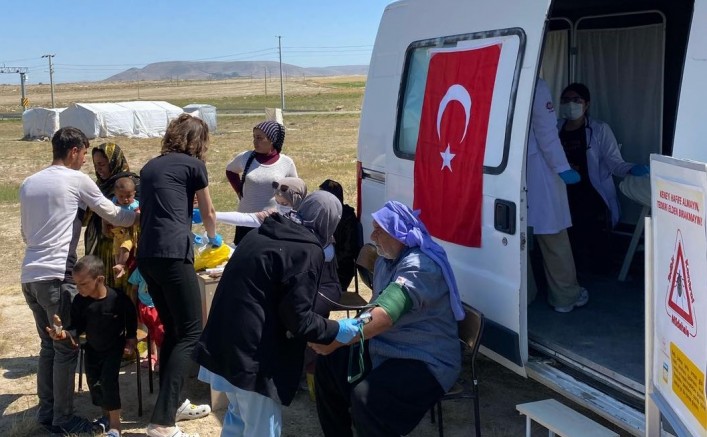 Sağlık ekipleri, mobil sağlık hizmetleri kapsamında işçilerin kaldığı çadır alanlarını ziyaret ederek yerinde sağlık taramaları yaptı. Kadın, erkek ve çocuk ayrımı yapılmaksızın tüm bireylerin temel sağlık kontrolleri gerçekleştirildi. Muayenelerin ardından gerekli görülen kişiler ilgili sağlık kuruluşlarına yönlendirilirken, birçok kişiye koruyucu sağlık hizmetleri hakkında da bilgi verildi.