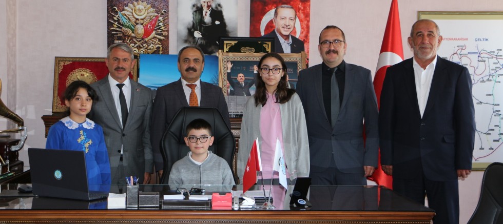 Küçük Başkan Ahmet Alperen Kıymetli, Başkan Günaltay'ın makam koltuğuna oturdu. Heyecanlı olduğu gözlemlenen küçük Başkan Kıymetli , Yunak merkezde bulunan oyun alanları, park ve bahçelerin bakım onarımı için gerekli talimatları verdi