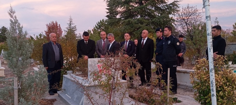 Heyet, daha sonra Saray Mahallesi Mezarlığı’nda bulunan Şehit Hasan Özkara’nın kabrini ziyaret ederek Kur’an-ı Kerim tilavetinde bulundu.