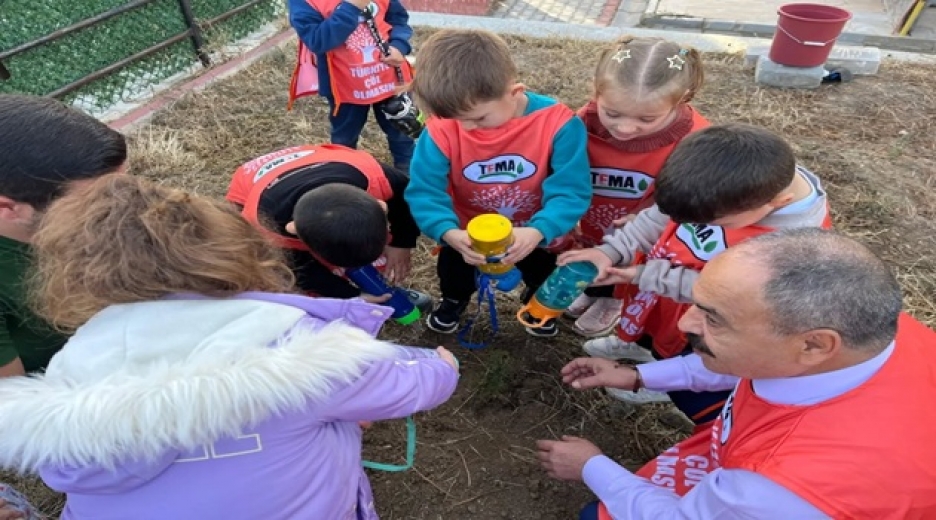 TEMA İlçe Temsilcisi Mehmet Han Telli tarafından verilen eğitim ve öğretmenlerce yapılan sınıf içi etkinliklerin ardından okul bahçesine çıkılarak fidanlar toprakla buluşturuldu. İlçe Milli Eğitim Müdürü Mahmut İşcan'ın da katıldığı etkinlikte, minik öğrenciler diktikleri fidanların can suyunu matara ve suluklarında bulunan su ile verdiler.