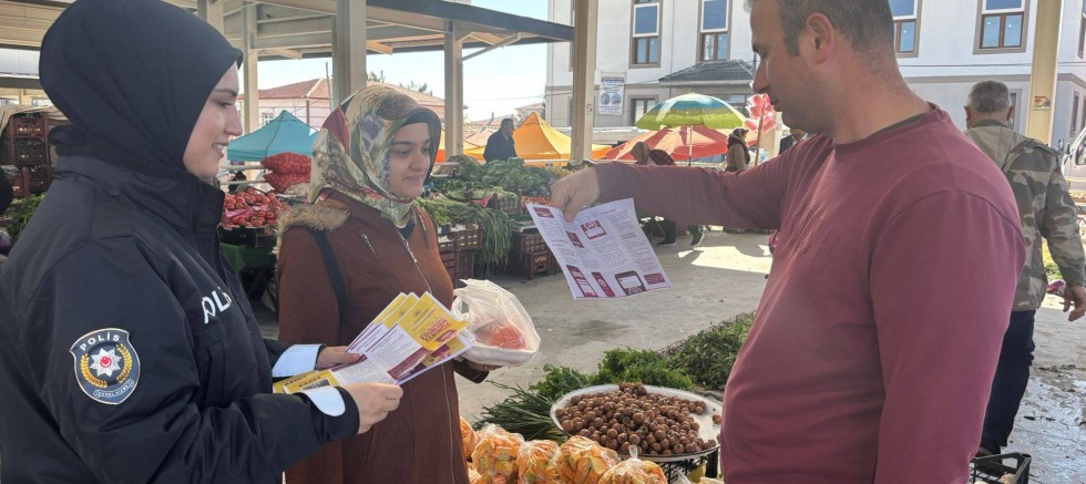 Çarşamba günü kurulan pazarın yoğunluğu değerlendirilerek vatandaşlarla birebir temas kuran ekipler, kadına yönelik şiddetin önlenmesine yönelik farkındalığı artırmayı amaçladı.